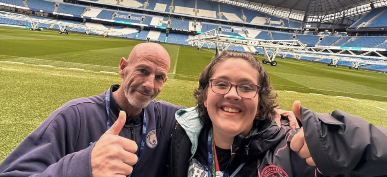 Since moving in, Emma’s world has opened up. Emma says: ‘I don’t sit in all the time anymore. I go to swimming, art classes, coffee mornings. I’ve got two voluntary jobs now, too. Sean has taken me to the Etihad stadium tour, and I’ve met Sean’s friend who takes me to the game every now and then too. I’ve even been to a Man City game on my own!’