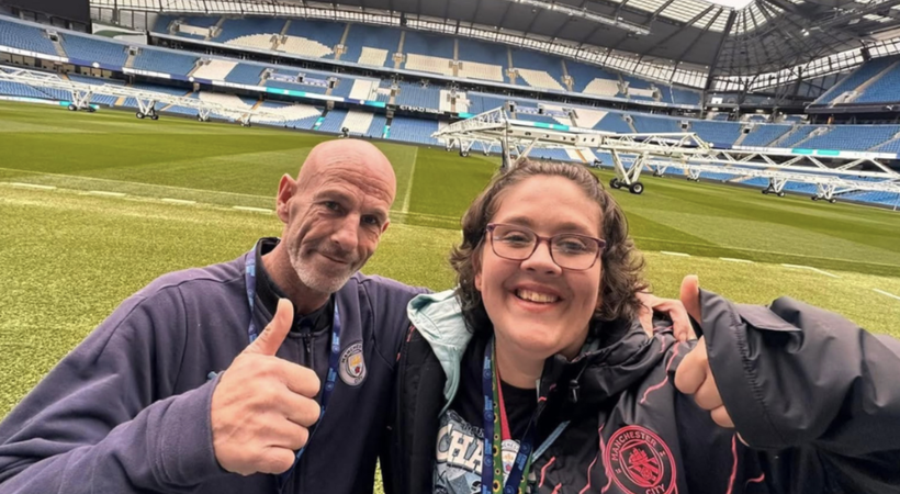 Since moving in, Emma’s world has opened up. Emma says: ‘I don’t sit in all the time anymore. I go to swimming, art classes, coffee mornings. I’ve got two voluntary jobs now, too. Sean has taken me to the Etihad stadium tour, and I’ve met Sean’s friend who takes me to the game every now and then too. I’ve even been to a Man City game on my own!’